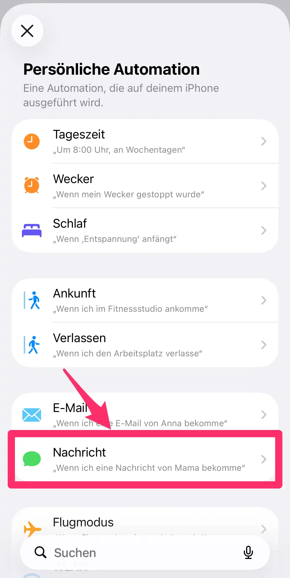 2. Wählen Sie "Nachricht" als Automation aus