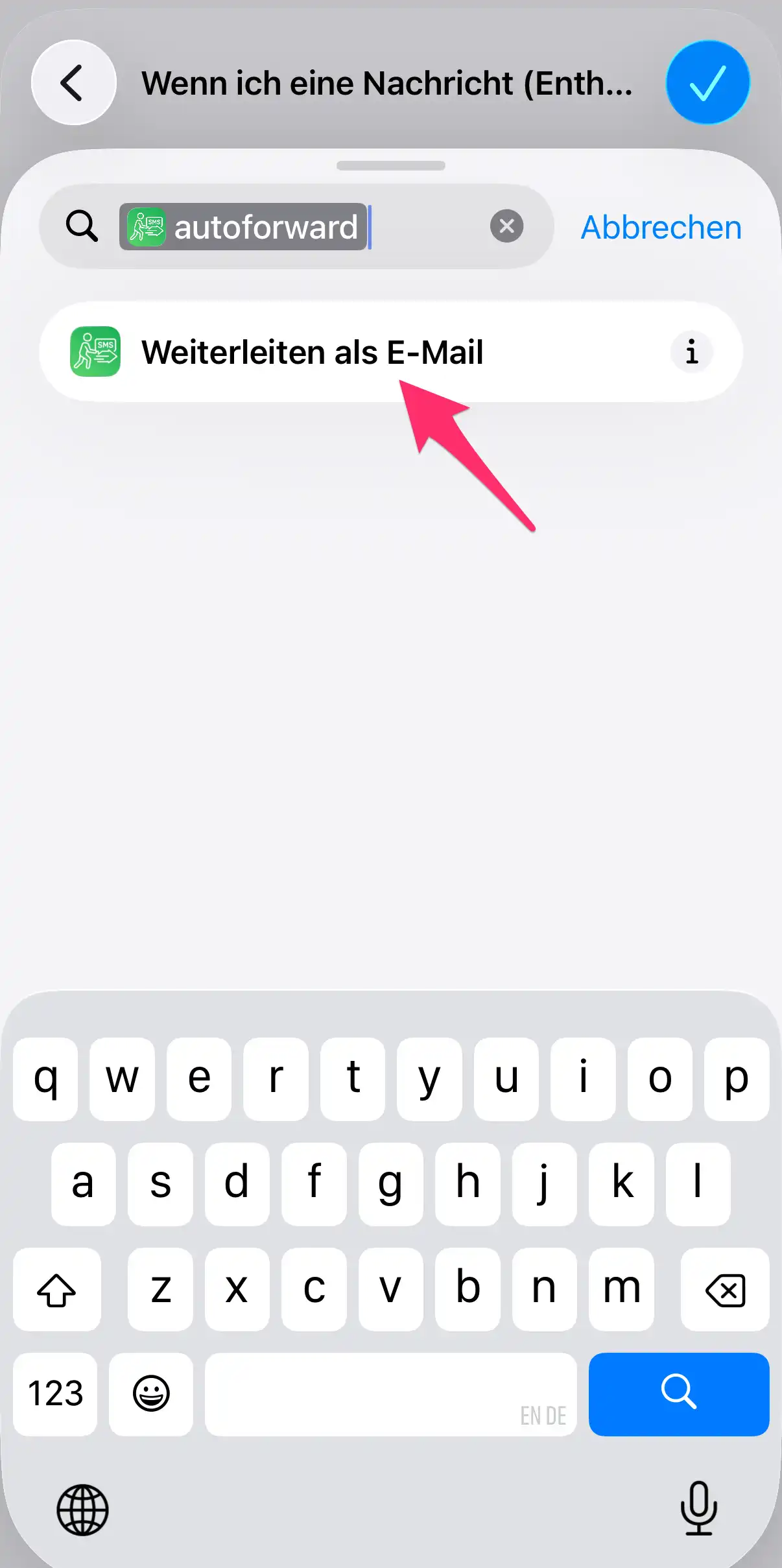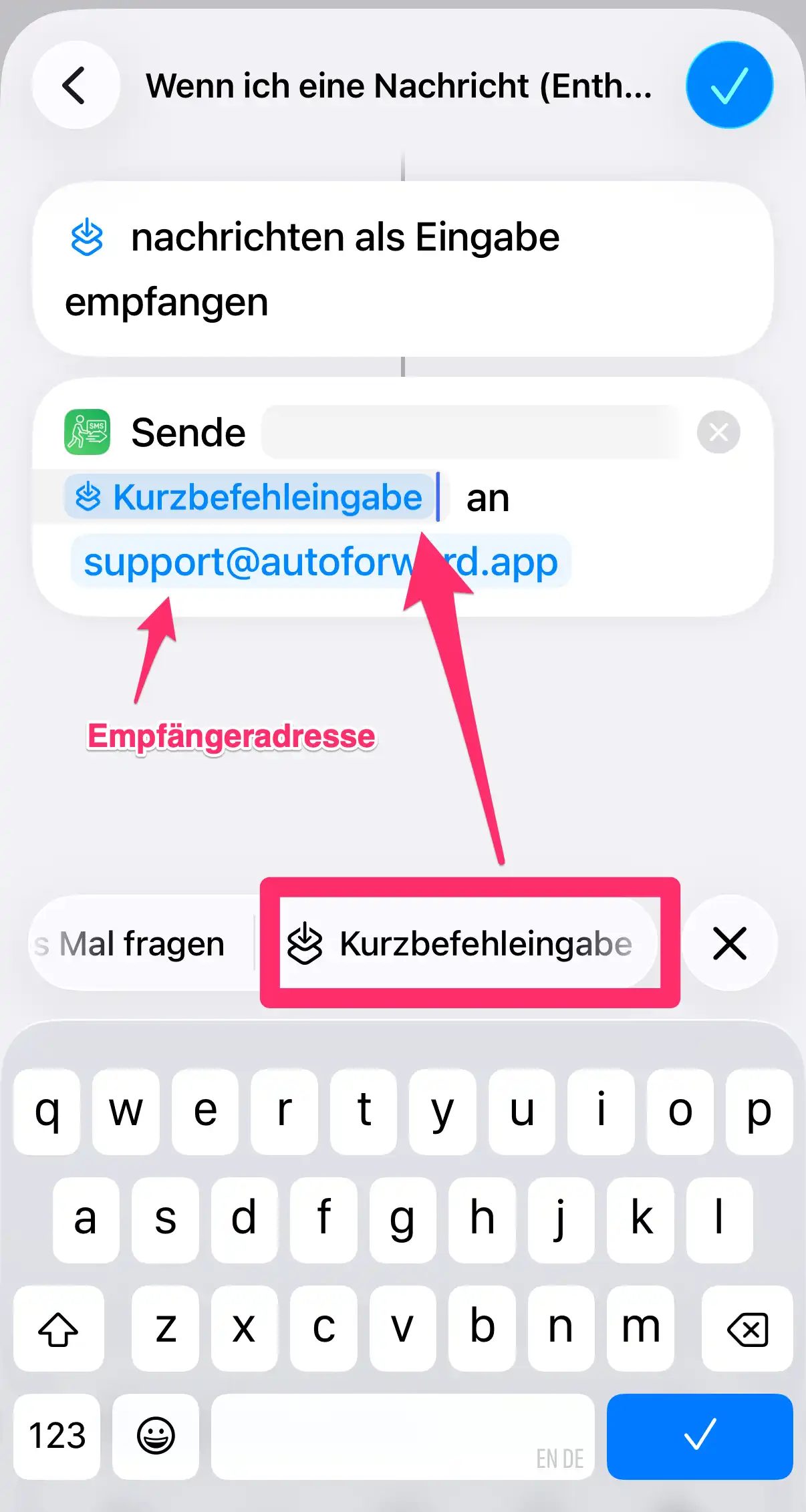 Diese Anleitung führt Sie durch die Einrichtung der SMS-Weiterleitung via E-Mail mithilfe der Shortcode-Funktion der autoforward App. Es wird vorausgesetzt, dass Sie die autoforward App bereits installiert haben und die "Kurzbefehle"-App auf Ihrem iPhone öffnen.